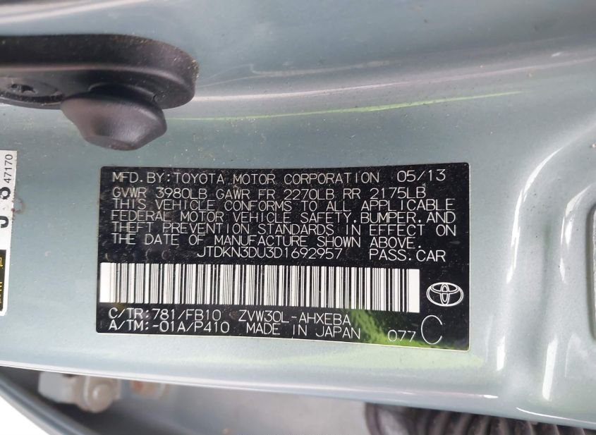 - Название лота: 2013 TOYOTA PRIUS TWO