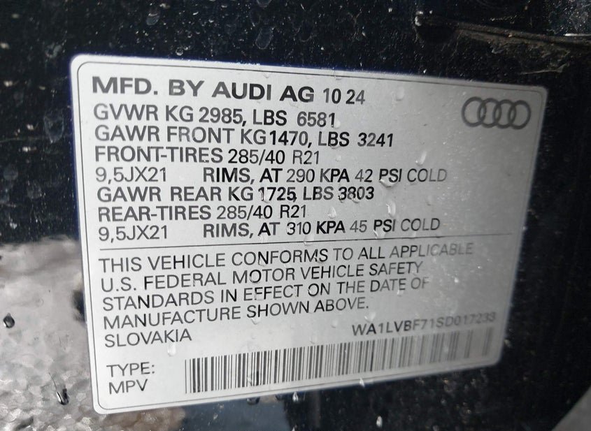 - VIN: WA1LVBF71SD017233