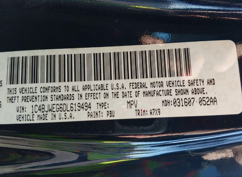 - VIN: 1C4BJWEG6DL619494