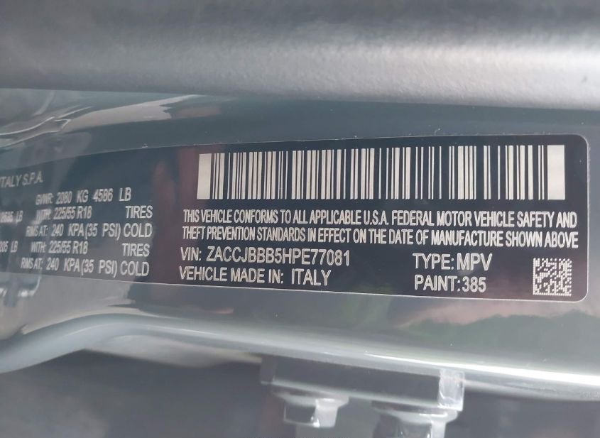 - VIN: ZACCJBBB5HPE77081