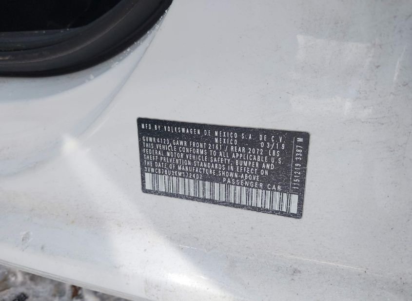 - VIN: 3VWCB7BU3KM172407