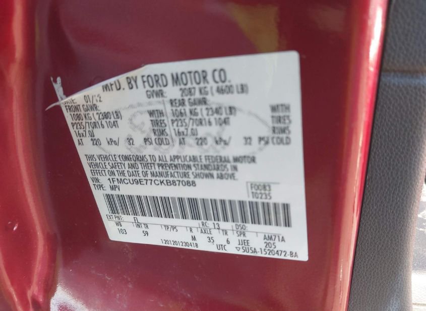 - VIN: 1FMCU9E77CKB87088