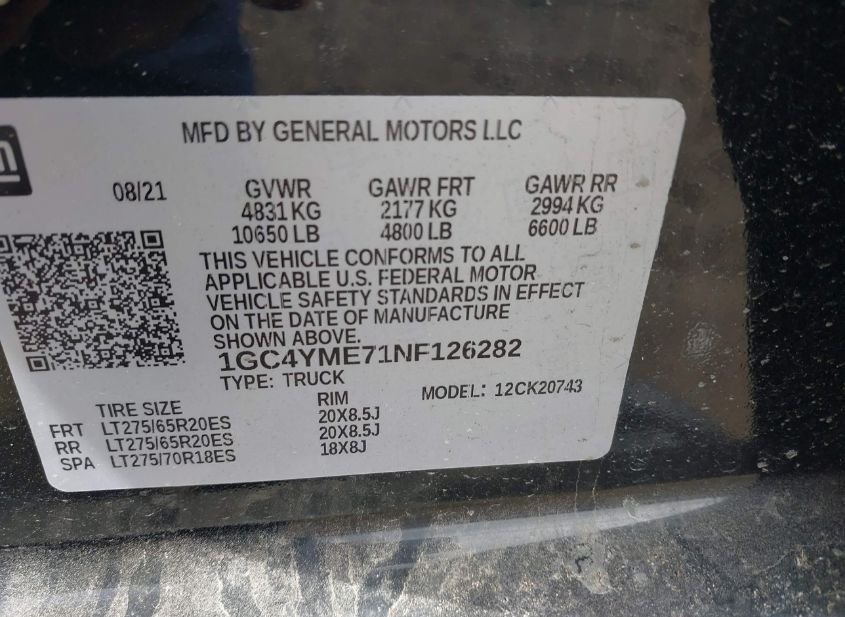 - VIN: 1GC4YME71NF126282
