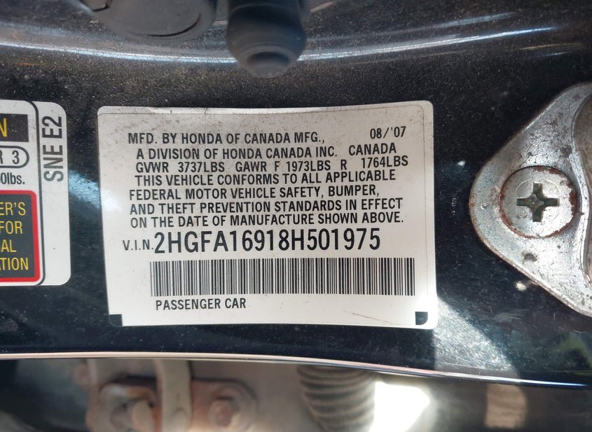 - VIN: 2HGFA16918H501975