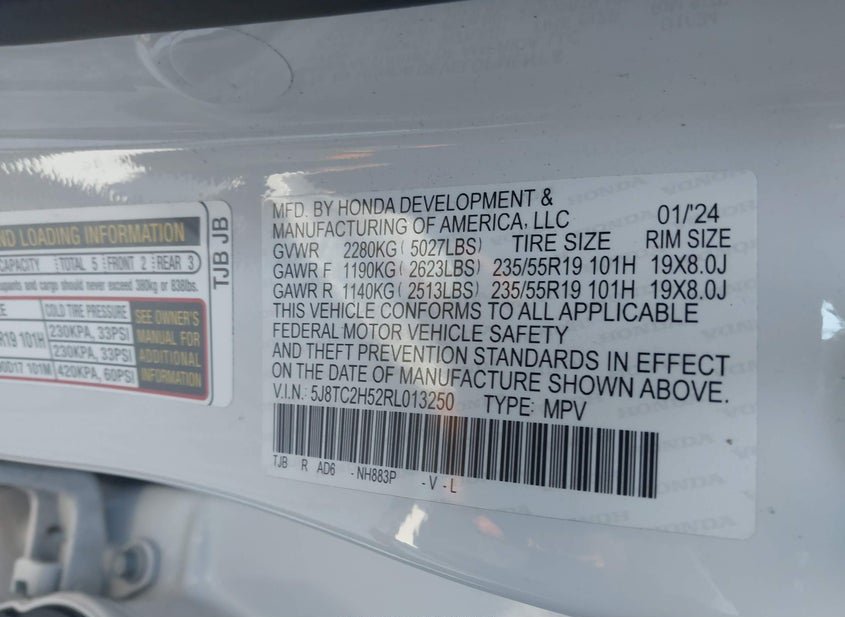 - VIN: 5J8TC2H52RL013250