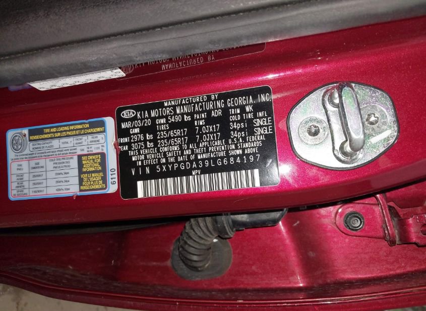 - VIN: 5XYPGDA39LG684197