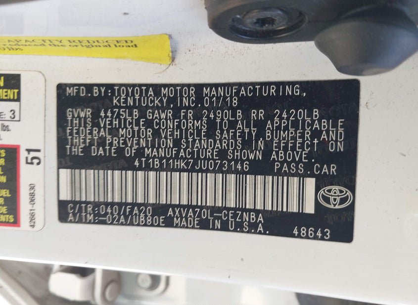 - VIN: 4T1B11HK7JU073146
