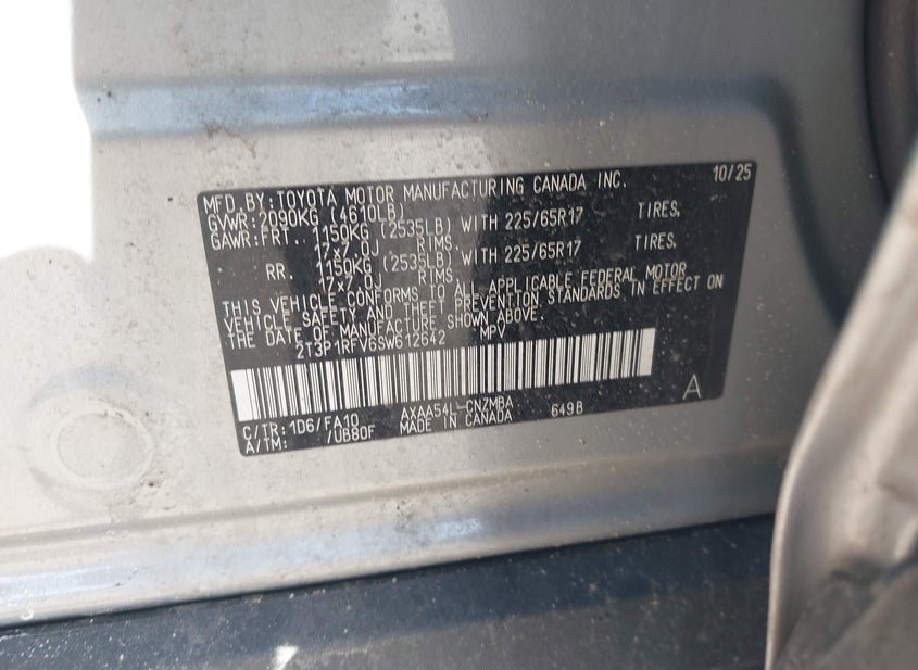 - VIN: 2T3P1RFV6SW612642