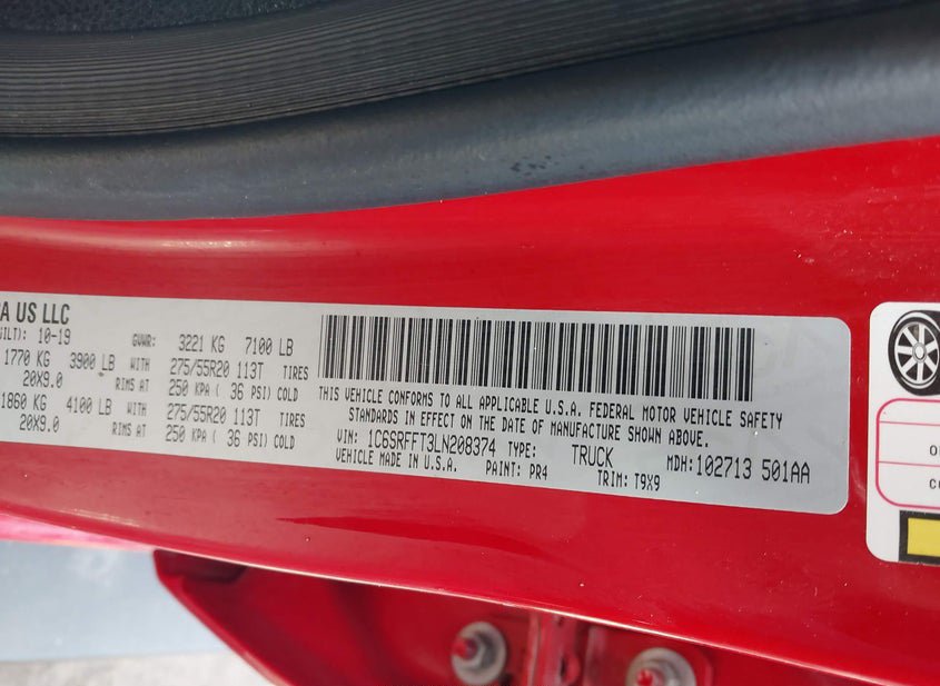 - VIN: 1C6SRFFT3LN208374