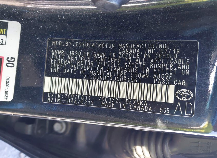 - Название лота: 2018 TOYOTA COROLLA LE