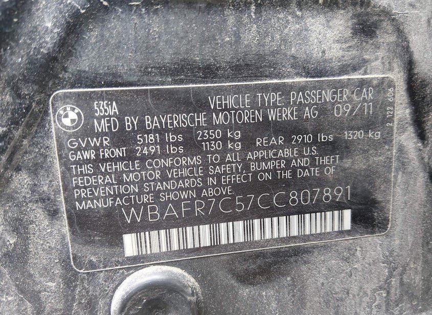 - VIN: WBAFR7C57CC807891