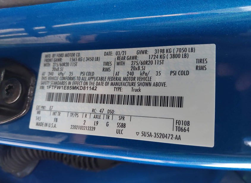 - VIN: 1FTFW1E85MKD81142