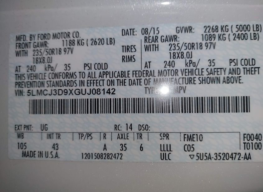- VIN: 5LMCJ3D9XGUJ08142