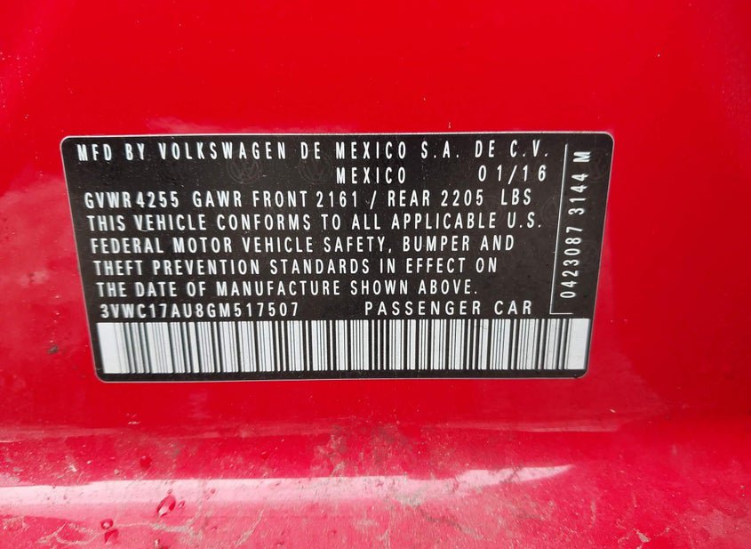 - VIN: 3VWC17AU8GM517507