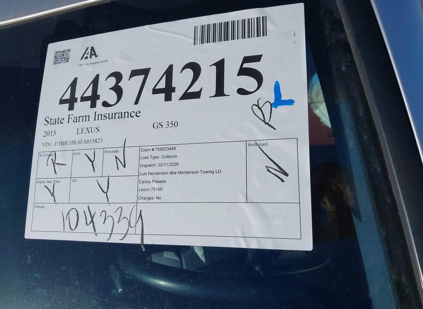 - Название лота: 2015 LEXUS GS 350