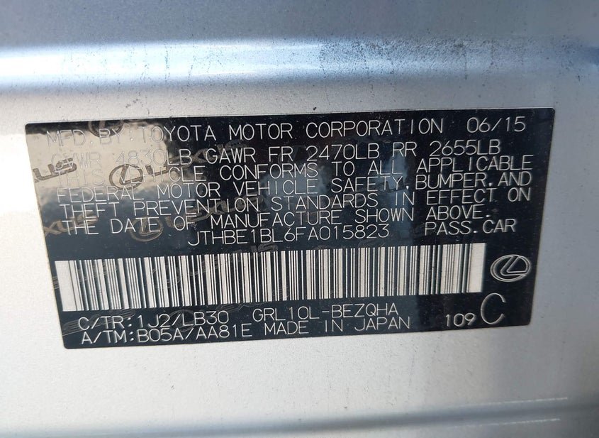 - VIN: JTHBE1BL6FA015823