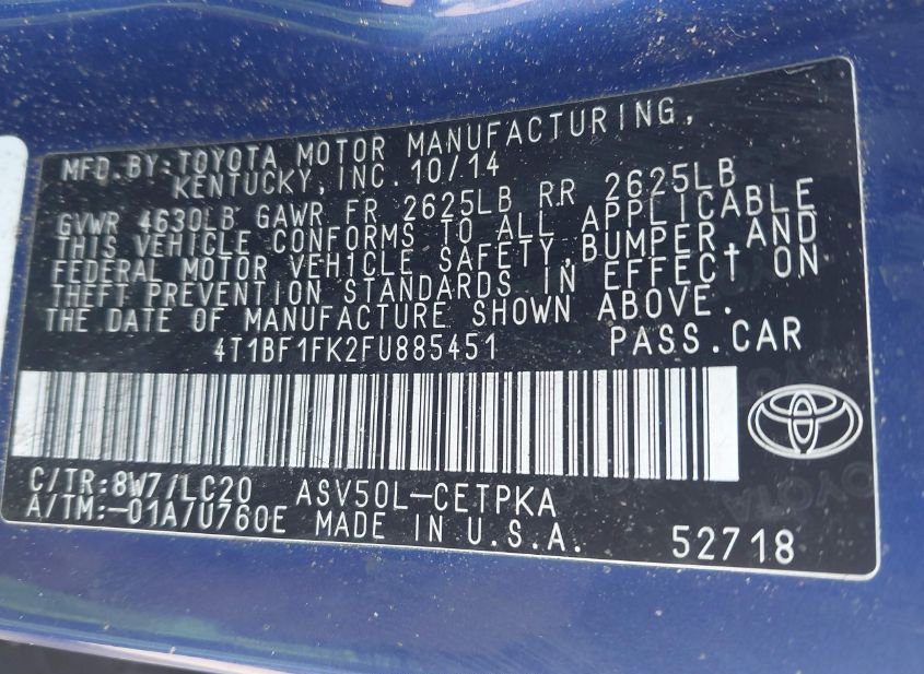 - VIN: 4T1BF1FK2FU885451