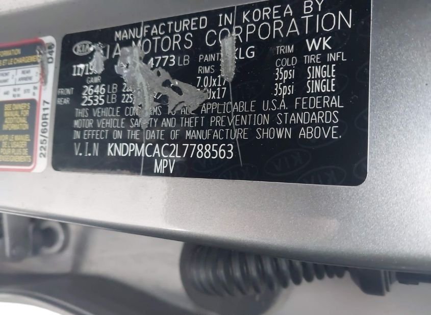 - VIN: KNDPNCAC6L7788563