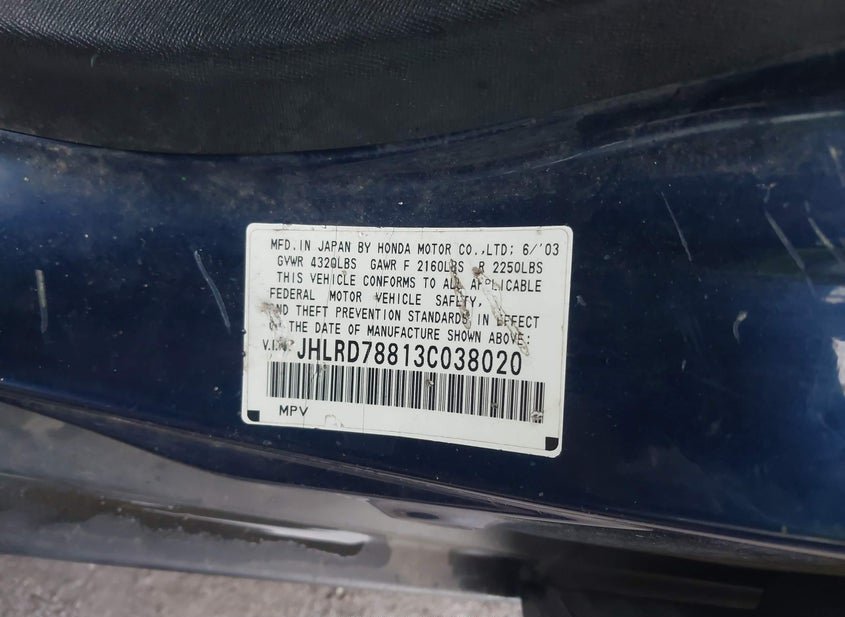 - VIN: JHLRD78813C038020