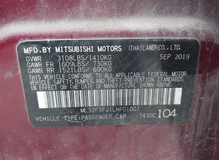 - VIN: ML32F3FJ1LHF01001