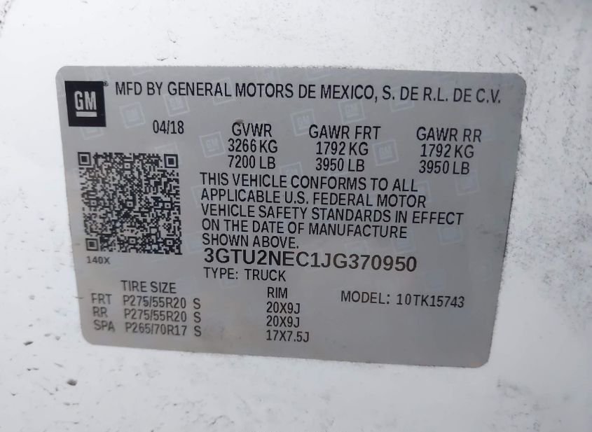 - VIN: 3GTU2NEC1JG370950