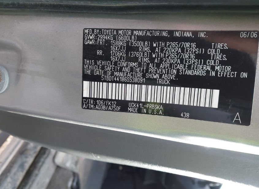- VIN: 5TBDT44186S538091