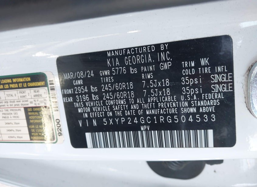 - VIN: 5XYP24GC1RG504533