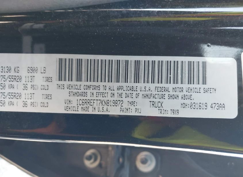 - VIN: 1C6RREFT7KN819872