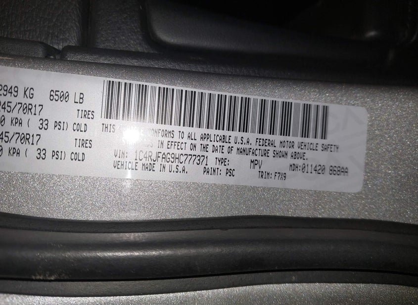 - VIN: 1C4RJFAG9HC777371