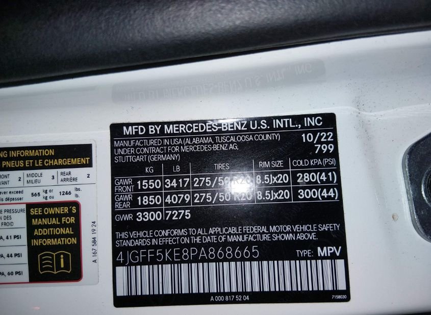 - VIN: 4JGFF5KE8PA868665