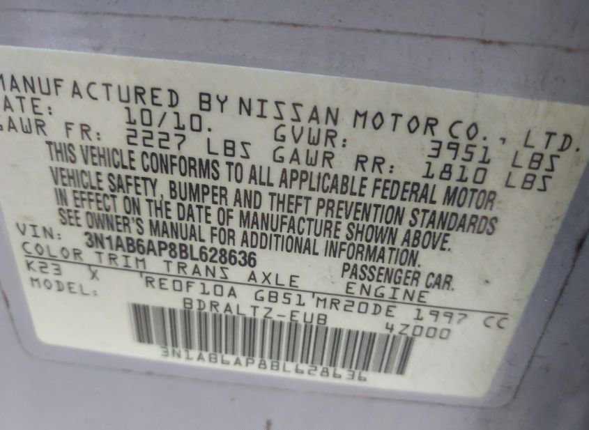 - VIN: 3N1AB6AP8BL628636