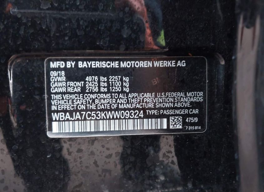 - VIN: WBAJA7C53KWW09324