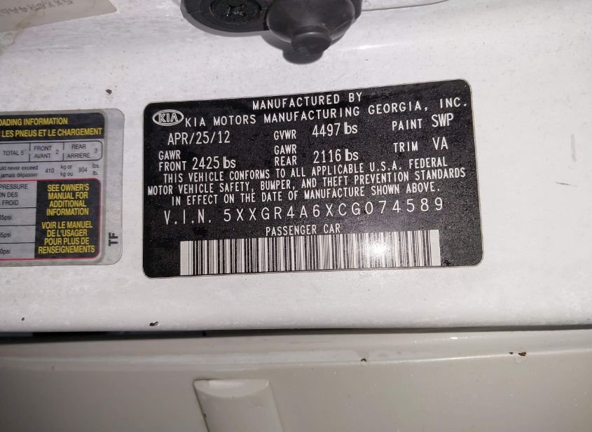 - Название лота: 2012 KIA OPTIMA SX
