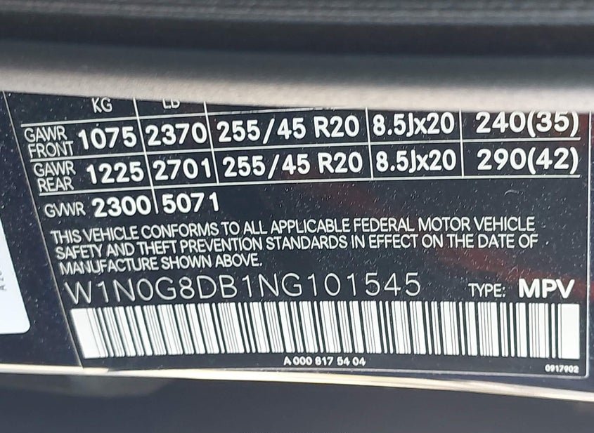 - VIN: W1N0G8DB1NG101545