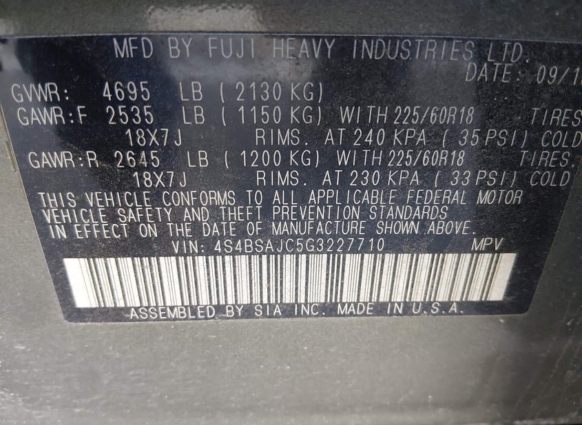 - VIN: 4S4BSAJC5G3227710