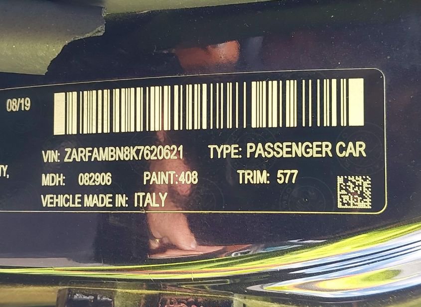 - VIN: ZARFAMBN8K7620621