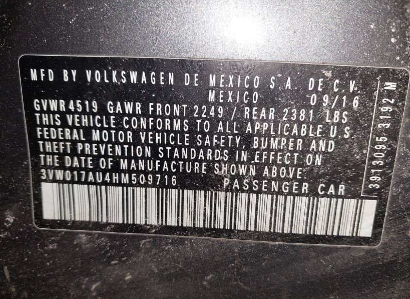 - VIN: 3VW017AU4HM509716