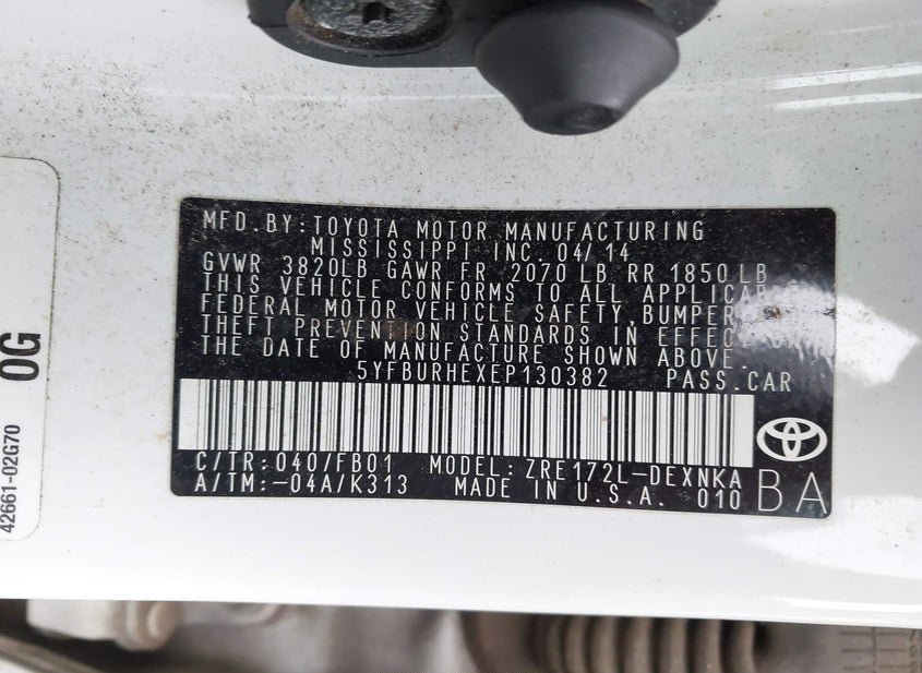 - VIN: 5YFBURHEXEP130382