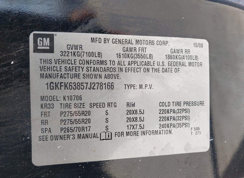 - VIN: 1GKFK63857J278166