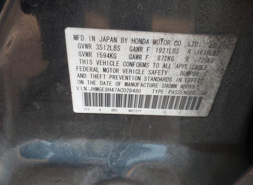 - VIN: JHMGE8H47AC028480