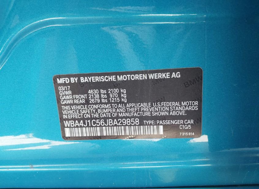 - VIN: WBA4J1C56JBA29858