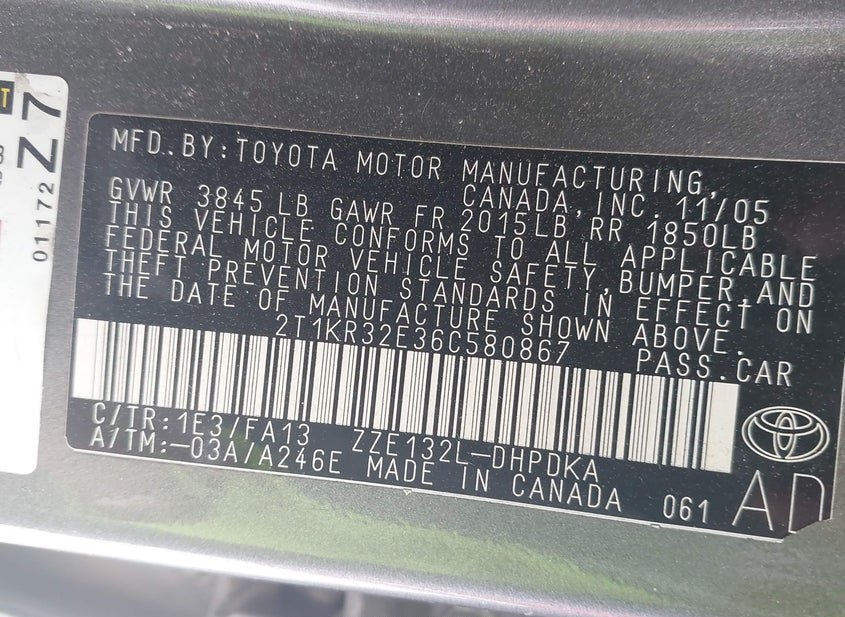 - VIN: 2T1KR32E36C580867