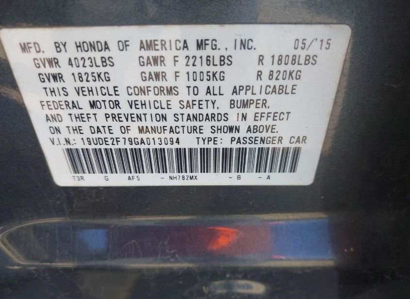 - VIN: 19UDE2F79GA013094