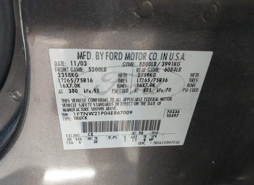 - VIN: 1FTNW21P04EB67009