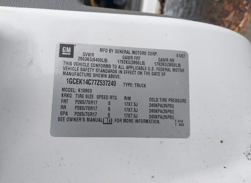 - VIN: 1GCEK14C77Z537240