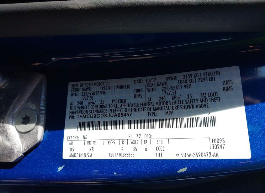 - VIN: 1FMCU9GDXJUA65457