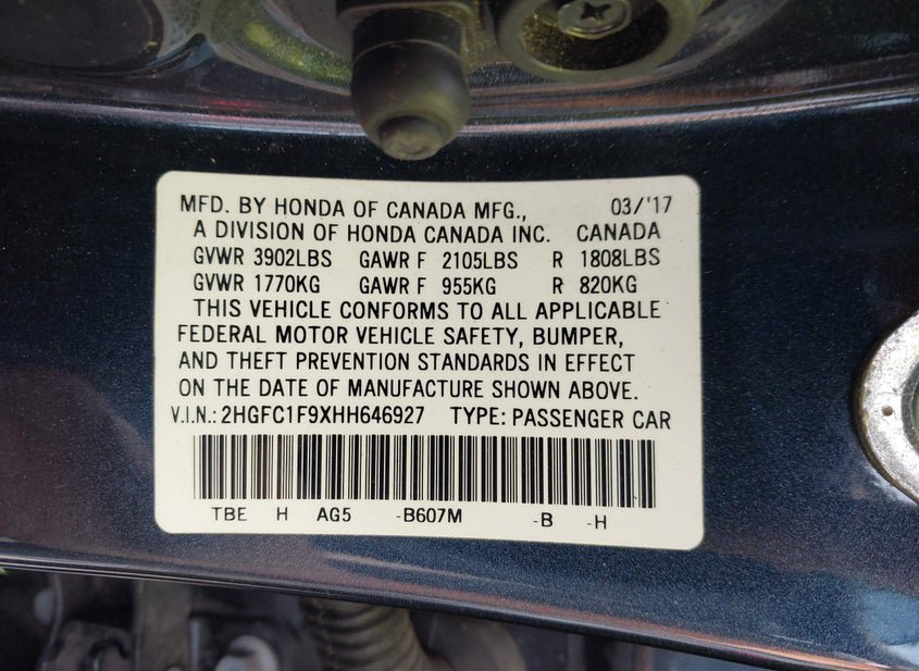- VIN: 2HGFC1F9XHH646927