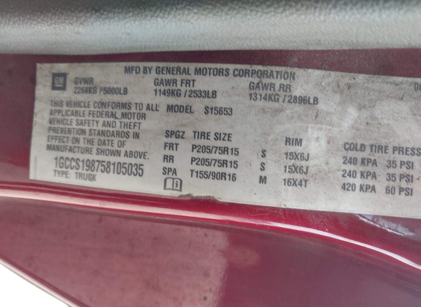 - VIN: 1GCCS198758105035