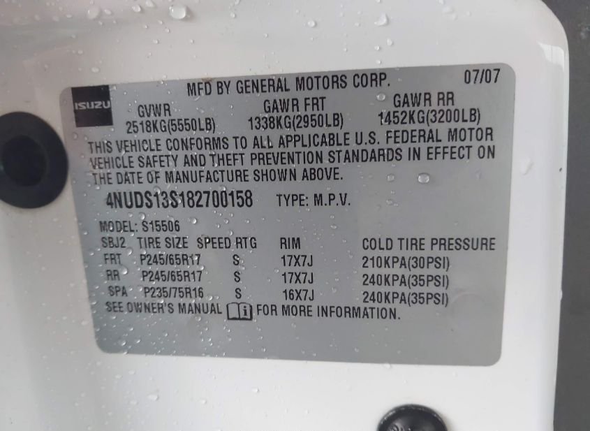 - Название лота: 2008 ISUZU ASCENDER S