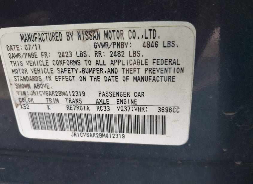 - VIN: JN1CV6AR2BM412319
